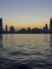 e city wall, a figure in a crimson cloak at the top of a huge tower stacked with countless pieces of...